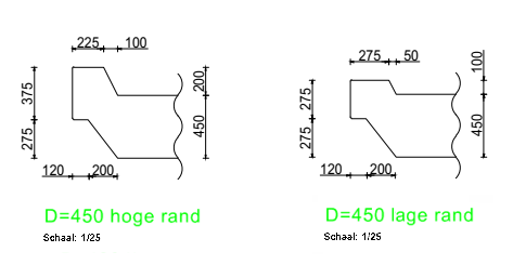 Op de randligger is ter plaatse van de leuning een verhoging aangebracht (schamprand) als opsluiting voor een eventuele slijtlaag.