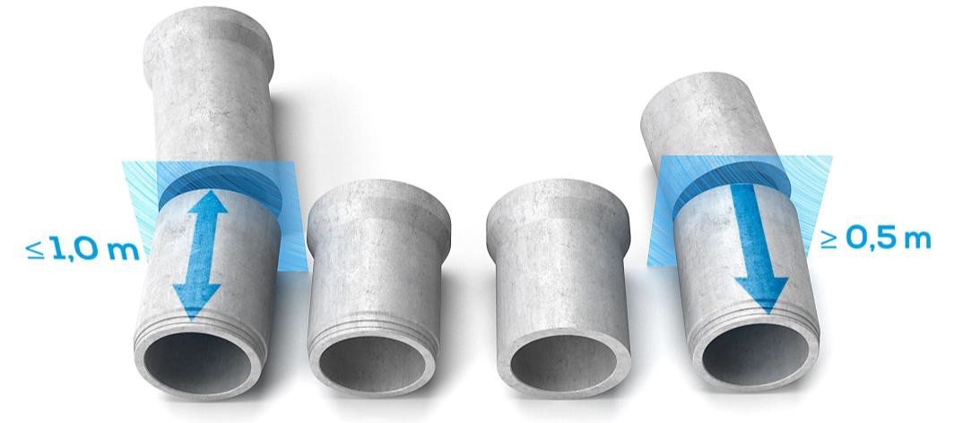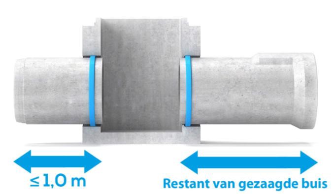De door ons aangeboden buizen kunnen, met een ter beschikking gesteld tang of door te zagen, t/m ø 500 mm eenvoudig ingekort worden. Voordeel is hierbij dat er geen afval is en geen dure passtukken want alles kan in de put gebruikt worden.