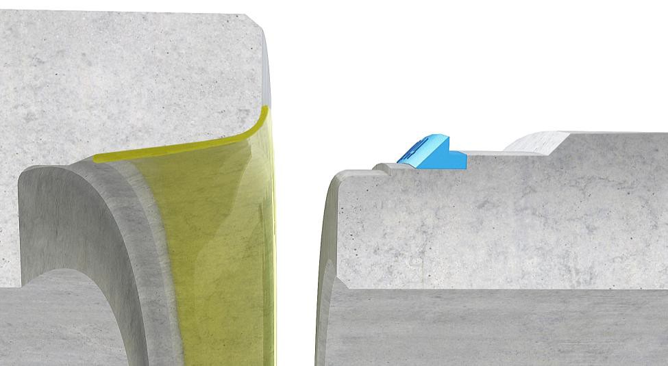 EI-vormige buizen 600/900 mm, 700/1050 mm en buizen met diameter vanaf ø 1250 mm worden voorzien van een direct ingestorte PVC-mof die bestand is tegen minimaal 60 kN bovenbelasting. De ingestorte PVC-moffen zijn standaard voorzien van een lekflens.