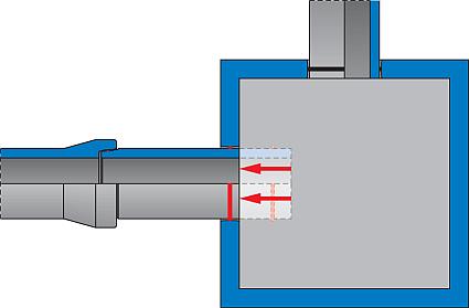 Dit dient zo dicht mogelijk achter de kraag of in de buurt van het spie-eind van de buis te geschieden. Het inhakken van een gat in een buis moet absoluut worden vermeden! Standaardmaten ø 125 en 160 mm.